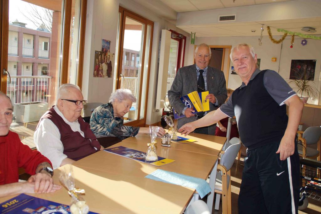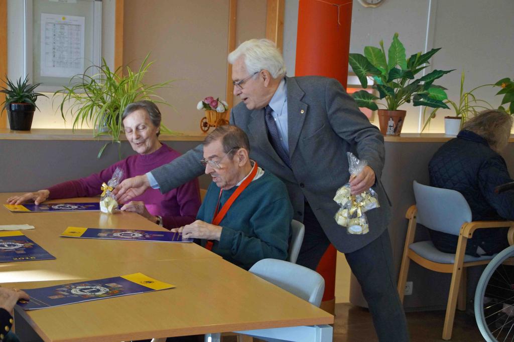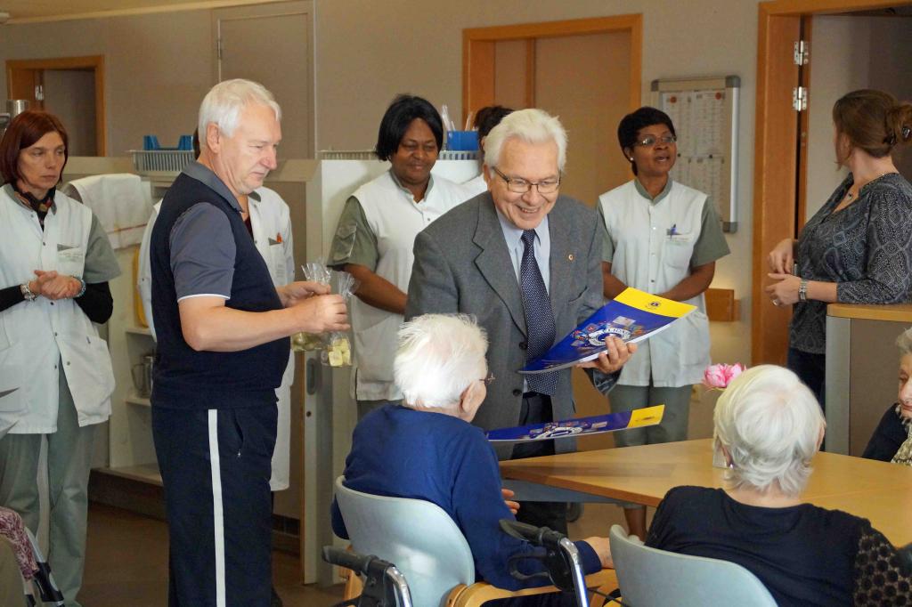 Chaque année, en période de Noël/Nouvel An, le Lions Club Bruxelles Longchamp visite une maison de retraite et offre des pralines et des calendriers aux résidents.
